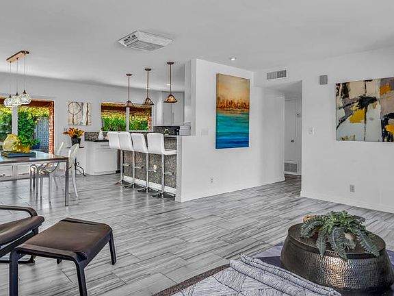 Your Happily Ever After Starts Here: An Oasis of Joy, Light, and Ultimate Privacy! Step into a world where every day feels like a resort vacation. This isn't just a home; it's a private, sun-drenched sanctuary built for pure happiness and effortless living! Experience ultimate privacy and abundant natural light in a space that feels expansive and airy, blurring the lines between indoors and out. Thanks to an open floor plan that seamlessly blends indoor and outdoor living, this home boasts a spacious feel far beyond its square footage. Walls of sparkling glass literally slide away, inviting you onto your magnificent property. The serene pool oasis, framed by lush, vibrant gardens, is calling your name--it's the perfect backdrop for everything from morning laps to glamorous twilight gatherings. The central Great Room is the heart of pure comfort, anchored by a cozy fireplace and offering stunning, sweeping views: a glittering pool to the south and a captivating canopy of palm trees to the north. Creating culinary magic is a delight in the elegant and functional kitchen, featuring gleaming granite countertops and updated cabinetry, all illuminated by energy-efficient Milgard double-paned, low E windows. Sleek, modern tiled floors flow seamlessly throughout, tying every luxurious detail together. Step outside to a picturesque, breathtaking backyard so beautiful it has served as the setting for intimate weddings! Discover multiple, tranquil havens perfect for your well-being--from sun-drenched spots for morning coffee, meditation, or yoga to the ultimate, quiet sanctuary nestled off the primary suite. This private area is ready to be your secure haven for relaxation or a happy play space for your favorite pets! This is a truly remarkable property that promises privacy, beauty, and an unparalleled lifestyle. Its irresistible charm and unique splendor must be experienced in person to truly capture the magic! Don't just dream about a better life--live it here! Home is no longer staged.