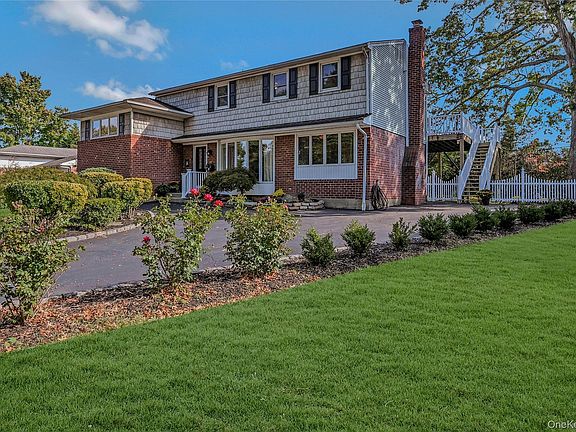 Fantastic 5 to 6-bedroom, 3 full-bath split-level home featuring oak floors and plenty of natural light. The eat-in kitchen flows into a family room with a cozy fireplace, and throughout the house, you'll find custom moldings that add a touch of elegance. Enjoy central air conditioning, ample storage, and sliding doors that lead to a lovely backyard complete with a patio and mature landscaping, all fully fenced for privacy. The completely legal third level includes a kitchen, bathroom, living room, bedroom, loft bedroom/office. Potential rental income with proper accessory apartment permit. Finished basement, gas heat, separate hw heater, CAC. True taxes are $15.726.34. Commack School District
