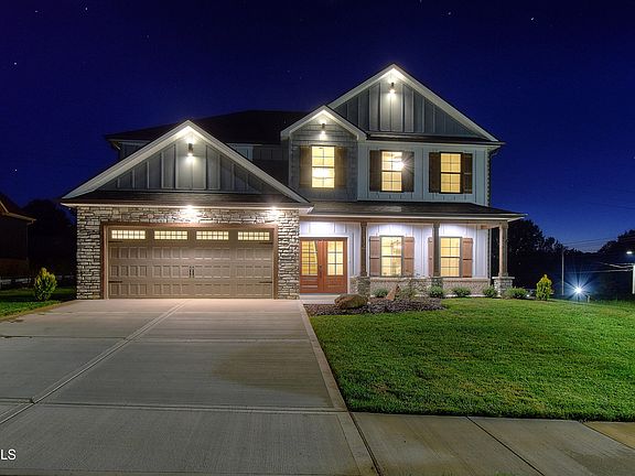 Stunning!! 4 bedroom, 3 bath open floor plan home with 2,700+ finished sq/ft located in Johnson City's newest upscale community, Glaze Farm. Upon entering, you are greeted with an inviting 2 story foyer and formal dining area with craftsman wainscoting trim. The living room is open to the kitchen and offers plenty of natural light, gleaming hardwood floors and a custom stone natural gas fireplace. The chef of the family will fall in love with the kitchen's open design, offering shaker style cabinetry (soft close door and drawers), quartz countertops, tiled backsplash, stainless appliances (gas cooktop and wall oven/microwave), cabinet hood vent, and an 8' island. Off the living room is a bedroom/office with a full bathroom right outside in the hallway. The second level offers a spacious 15x16 family/den area that is sure to provide your family with the extra living space needed. The luxurious primary suite features hardwood flooring, accent wall, dual vanity sinks, custom 7' custom tile walk in shower, and large walk-in closet with laminate shelving. The 2nd and 3rd bedrooms are generously sized each with walk-in closets. For added convenience, the laundry room is located on the 2nd level. This home features natural gas- tankless water heater, gas HVAC, cooktop and fireplace. Enjoy the evenings on the covered back patio overlooking the backyard. Flooring is hardwood throughout (tile in baths)- NO carpet! This home is packed with upgrades throughout and offers natural gas- HVAC, tankless water heater, gas cooktop and fireplace. Glaze Farm is a brand new upscale neighborhood conveniently located in Johnson City near Boone Lake, shopping, schools and restaurants. Zoned for Johnson City City Schools (Lake Ridge Elementary!). All information herein deemed reliable but subject to buyer's verification. Taxes not yet assessed. Estimated completion- September 2025