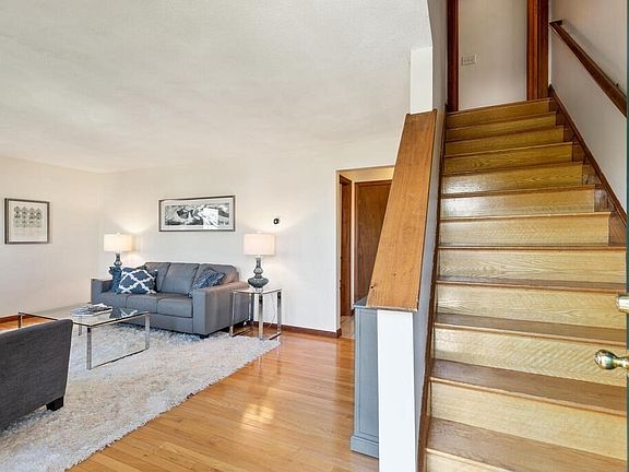 This updated, energy efficient 4 bedroom 2 full BA Cape with hardwood floors is situated on a corner lot on a quiet side street. First floor offers formal living and dining rooms, first floor bedroom, full bath and a large updated, eat-in kitchen with granite countertops, wetbar and large pantry closet. The tiled mudroom leads to the spacious two car garage. The second floor features a front to back master bedroom, updated full bath and two more bedrooms. The lower level has a spacious playroom with laundry area and ample closets for storage. Easy access to commuter routes, shopping and recreational areas.