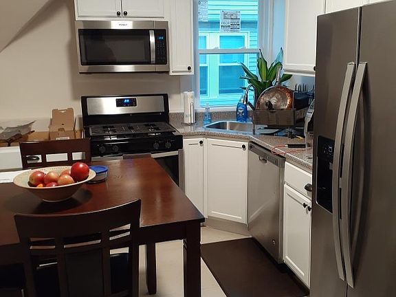 Newly rennovated spacious three bedroom apartment on third floor of multifamily townhouse with plenty of parking and storage is available for rent. Unit has its own separate entrance and exit , electric and gas meters. Apartment is updated with New kitchen cabinets, stainless steel energy efficient appliances, newly done bathroom, floors and fresh paint.