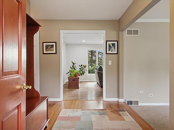 Tucked away at the end of a quiet cul-de-sac and surrounded by nature, this inviting ranch home offers the perfect balance of comfort, convenience and charm. With nearly an acre of land backing up to Stonehenge Golf Course, you'll enjoy sweeping golf course views from the kitchen, family room and primary suite, as well as the beauty of established perennial gardens just outside your door. Spend mornings walking the nearby trails, afternoons at the playground or tennis and pickleball courts (with night lights for evening play), fall evenings making s'mores around your firepit and weekends exploring nearby Lake Zurich, downtown Barrington and Fox River Grove-all just minutes away. Two nearby Metra stations make commuting simple, while shopping and dining are always within easy reach. Inside, the thoughtfully updated eat-in kitchen, with slider (2020) leading out to an oversized composite deck, is the heart of the home. Gather around the quartz-topped island, enjoy the convenience of a pantry and appliance cubby and cook with top-quality KitchenAid and GE stainless-steel appliances. The spacious family and living rooms invite relaxation, while the primary suite provides a private retreat with an oversized walk-in closet designed for organization. With four bedrooms and three full baths on the main level, two fireplaces (being conveyed as-is as the sellers do not use them) and a huge laundry room with tons of storage, a utility sink and a folding counter, this home is designed for easy living. The unfinished basement is ready for your ideas, whether you dream of a rec room, workshop or additional living space. Recent updates include: a brand-new roof (2024), newer A/C and furnace, a composite deck with stylish wire railing (2024), newer wood laminate flooring in the kitchen, dining room and laundry room (2021) and kitchen upgrades (including white cabinets, quartz counters/island, newer appliances and glass tile backsplash) completed in 2021/2022. An oversized two-car garage offers plenty of space for vehicles and storage.