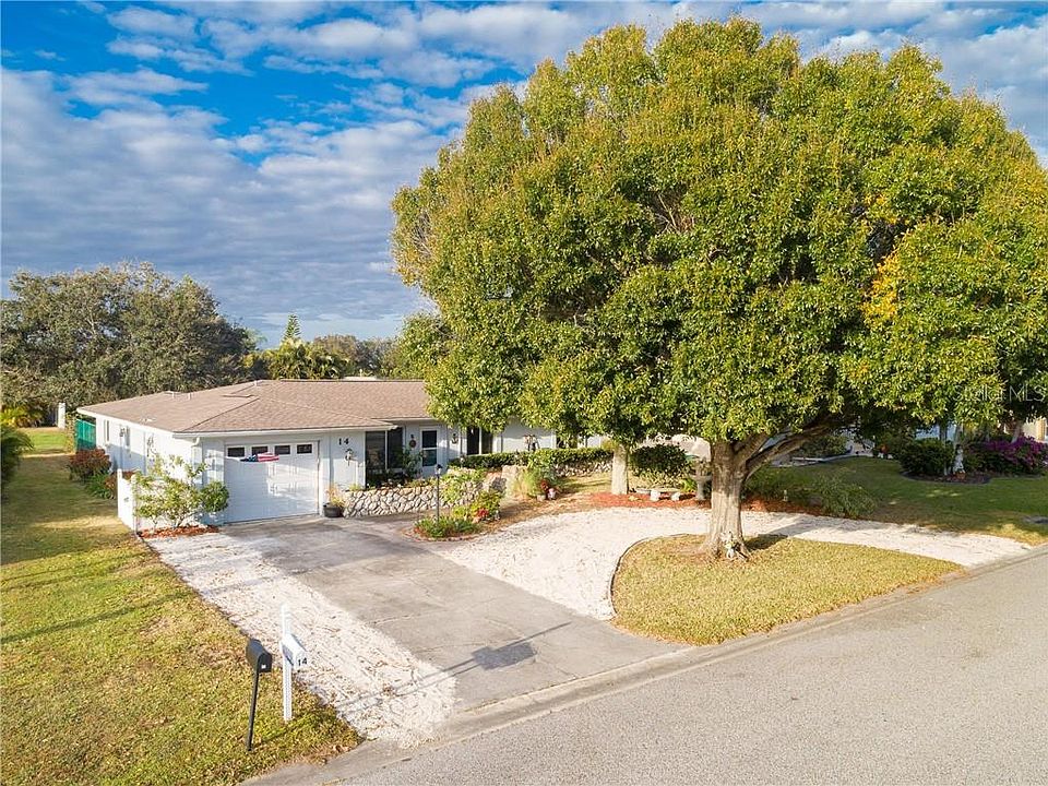 The sun is always shining on this beautiful pool home! The tropical landscaping, bubbling fishpond, and stylish exterior features create anticipation for what lies ahead. As you walk through the whimsical courtyard style entrance, ceramic tile flooring leads you throughout this home and is easy to maintain. Designer wall colors, elegant lighting fixtures, and chair railing speak to the quality of this home. Numerous windows create an energizing flow of natural light, and the well-designed floorplan creates the feel of a much larger home. The gourmet kitchen features gleaming granite counters, beautiful wood cabinets, stainless appliances, a gorgeous glass tile backsplash, a closet pantry, and looks out to the family room. The large family room provides a sunny space with French Doors opening to the screened lanai and pool, perfect for entertaining, and the split bedroom floorplan in this rare 4-bedroom home offers privacy for you and your guests. Have coffee on the peaceful patio enjoying the views of your pool as you plan your day. Located in a premier golfing community, you are close to golf courses, beaches, shopping, and restaurants. Or relax by your sparkling pool, using the pool bath to keep your floors dry. Later, fire up the grill and enjoy the privacy of your backyard and greenbelt views. Or a more formal dinner in the dining room or nook may be in order. There is a fenced area for your favorite critters, and the hurricane impact windows are icing on this cake. It is time for your sun to shine!