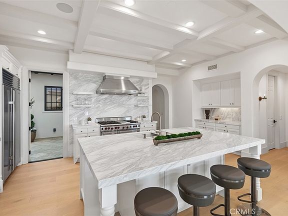Exquisitely move-in ready, this exceptional 5,045 sq. ft. residence is set on a private 13,871 sq. ft. lot on one of Crystal Cove’s most coveted ocean-view cul-de-sacs. Recently reimagined with luxurious, contemporary finishes, the home features elegant white oak flooring, exquisite stone countertops, and custom lighting that together create a harmonious, sophisticated design. The expansive, thoughtfully crafted floor plan includes up to five generously sized bedrooms, a chef-inspired gourmet kitchen, a media room, and versatile spaces for both intimate gatherings and formal entertaining. Step outside into the serene, resort-style backyard, where lush gardens, a raised viewing platform, and a stylish covered cabana with a cozy fireplace set the stage for the ultimate outdoor living experience. The state-of-the-art outdoor kitchen, equipped with a top-tier grilling area, complements the tranquil saltwater pool, creating a true private oasis. Panoramic ocean vistas stretch out before you, with unobstructed views of Catalina Island and breathtaking sunsets, offering a rare combination of privacy, tranquility, and natural beauty. For added convenience, the home includes a three-car garage and an oversized driveway with space for up to seven vehicles, ensuring ample parking while maintaining an exclusive feel. This property is the epitome of coastal luxury, combining both privacy and convenience for a lifestyle like no other. Beyond the residence, residents enjoy a host of exceptional amenities provided by the HOA, including playgrounds, parks, and 24-hour guard-gated and patrolled security. The exclusive Canyon Club offers unparalleled privileges, including tennis, pickleball, basketball, swimming, fitness, and banquet facilities. With world-class shopping, dining, and the renowned beaches of Crystal Cove just moments away, this remarkable home offers the perfect blend of coastal living and modern convenience. 14 Gondoliers Bluff represents a rare opportunity to fully embrace the quintessential Newport Beach lifestyle.