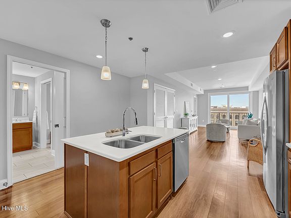 Move-in ready condo awaits you in Downtown Wilmington in the Overlook at River Place. Picturesque city views with Juliette Balcony. Spacious floor plan with eat-in kitchen island, quartz counter tops and tiled backsplash. Pocket doors a plenty for private bath and walk-in closet. Owners enjoy community pool, well-appointed fitness center and amenity deck with superb views of the Cape Fear River and USS NC Battleship. River Walk, music venues, shopping and fabulous restaurants just steps out your door. Furnishings are negotiable. Contact us today for your private tour!