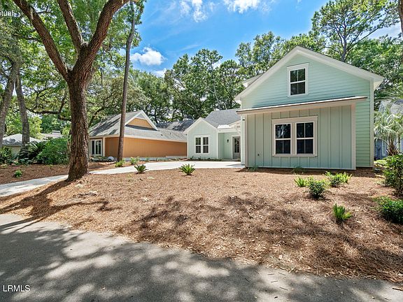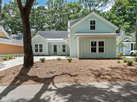 Brand New Build in Progress! Stunning views of the 11th green and lagoon from this nearly 1 acre lot in Pleasant Point, Lady's Island. This updated Ranch-Style Retreat features an open great room, quartz countertops, and a split floorplan with the primary bedroom separate from others. Includes an Unfinished FROG (option to finish for added sqft). Boasts 10-ft ceilings, a screened porch, fireplace, 3 beds, 2.5 baths, 2-car garage, and a golf cart garage. Customize finishes/options with an acceptable offer. LVP/tile flooring throughout—no carpet! Includes an irrigation system, fenced backyard with tabby finish. Pleasant Point offers a pool, golf course/pro shop, tennis, pickleball, and clubhouse surrounded by gorgeous live oaks and palm trees. Don't miss this luxurious low-maintenance home!