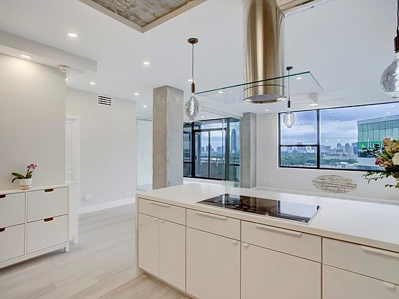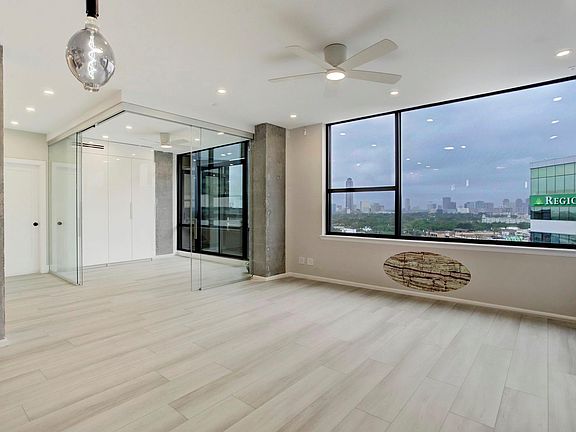 This striking, move-in ready highrise unit showcases the latest in design and contemporary flair. The spacious light-filled floorplan was totally redesigned with modern elegance in mind. The kitchen features high-gloss cabinets, sparkling waterfall countertops, designer lighting and a Smart appliance package, Both bathrooms are outfitted with sleek Italian tile, Toto wall-hung toilets, and HansGrohe fixtures. Flexible space enjoys gorgeous Galleria and sunset views as a home office or guest bedroom. Enjoy all of the superb Greenway service right in the heart of Houston.