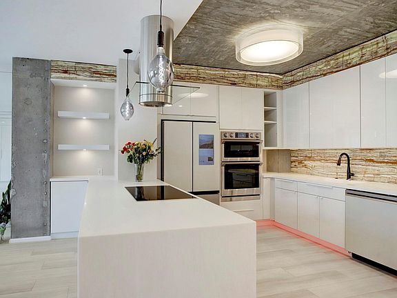 Modern eleganceHighrise unitFlexible spaceSpacious light-filled floorplanSparkling waterfall countertopsHigh-gloss cabinetsSleek italian tile