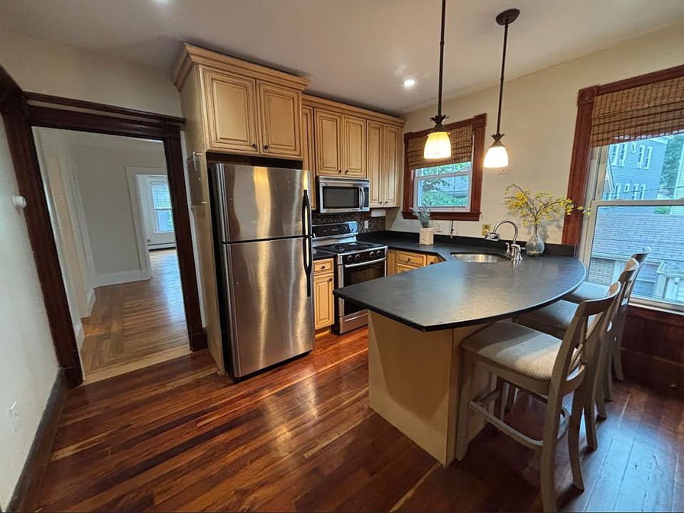 Top-Floor 2 3 Bedroom Apartment Porter Square Steps to Red Line Bright and spacious 6-room apartment on the top floor of a two-family home, tucked away on a quiet dead-end street in Porter Square just minutes from the Red Line, Mass Ave., Harvard Law, and Lesley University. Flexible layout: 2 bedrooms + office or 3 bedrooms Freshly painted with refinished hardwood floors throughout Eat-in kitchen with cherry wood floors, pantry, and in-unit Maytag washer/dryer Stylish bathroom with soaking tub, jets, and heated massage 2 off-street parking spaces included Pets considered (up to 3 with landlord approval) Front porch currently under renovation (completion soon) No yard access (reserved for first-floor unit) Located next to commuter rail (train passes hourly) Tenant pays gas and electric; landlord covers water 10 12 month lease | Available now or July 1st Water/sewer included Pets negotiable