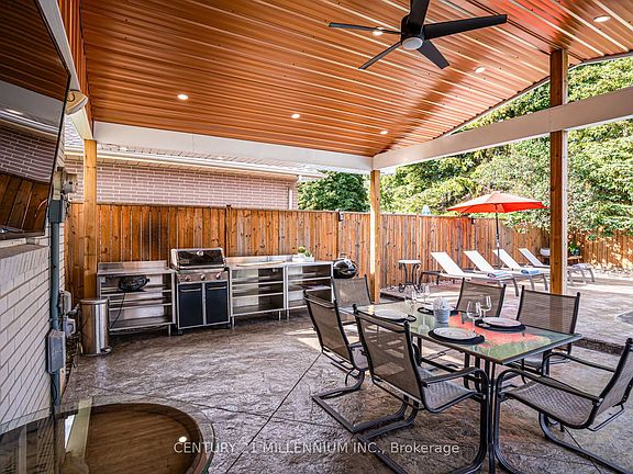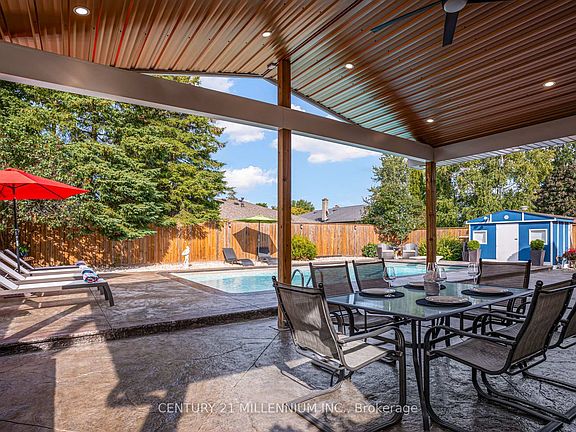This stunning modern home, located in the highly sought-after Ridgehill Manor community of Brampton, offers impeccable design and craftsmanship with no detail overlooked. Simply move in and enjoy a lifestyle of comfort and luxury. Step into a true entertainers paradise featuring a professionally landscaped backyard that looks straight out of Homes & Gardens magazine. Highlights include a 16' x 32' heated in-ground pool, seamless stamped concrete surfaces, and a breathtaking loggia with a cathedral ceiling, built-in BBQ, surround sound, and TV connectivity. The impressive exterior continues with a double-width patterned concrete driveway accommodating six vehicles, a 1.5-car garage, and a custom covered front porch. Inside, you're welcomed by a spacious foyer with a frosted glass closet door and refined finishes throughout. The oversized, modern kitchen is a chefs dream, showcasing two-tone custom cabinetry, a large island with breakfast bar, commercial-grade gas cooktop with high-end exhaust system, and stainless steel appliances. The open-concept living and dining area boasts upgraded engineered hardwood flooring and a sleek gas fireplace. Generously sized bedrooms feature refinished hardwood floors and built-in closets with organizers. The luxurious primary ensuite bath offers a spa-like experience with heated flooring, double sinks, and a large glass-enclosed shower. In total, the home offers four fully renovated bathrooms. Additional upgrades include: premium millwork and interior doors, updated electrical and plumbing systems, energy-efficient vinyl windows, stucco exterior with added insulation, tankless water heater, and central air conditioning. The lower level provides a stylish and functional retreat, with luxury vinyl flooring, a spacious fourth bedroom, a modern three-piece bath with a separate shower, and a well-appointed laundry room.This is a truly turn-key property that blends elegance, functionality, and comfort. A must-see, shows 10+++