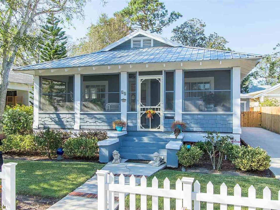 BUILT IN 1910 & BEAUTIFULLY RESTORED IN 2012! New A/C, new plumbing, new electric, new irrigation, new fence, new outdoor shower w/hot & cold water, new roof plus original heart pine floors have been beautifully restored! Parking is no problem with long driveway leading to 2 car garage w/custom workbench. Charming brick courtyard in back yard. And, what a great location! Walk to downtown shops & festivities! Located in downtown historic St. Augustine! 2 car garage includes half bath & old "Farmers" sink on one side with custom workbench & lots of storage on other side! Owner even added shelving up high for additional storage. Could be perfect setting for an inlaw suite with 1/2 bath already installed in garage. This adorable home looks like it stepped out of the pages of a picture book! It is absolutely darling!
