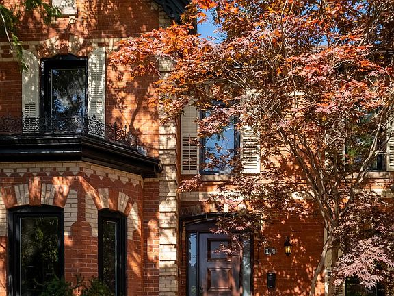 Detached red-brick beautyPrivate gateExpansive principal roomsHardwood floorsSoaring ceilingsOriginal architectural detailsStatement period fireplace