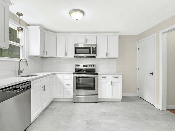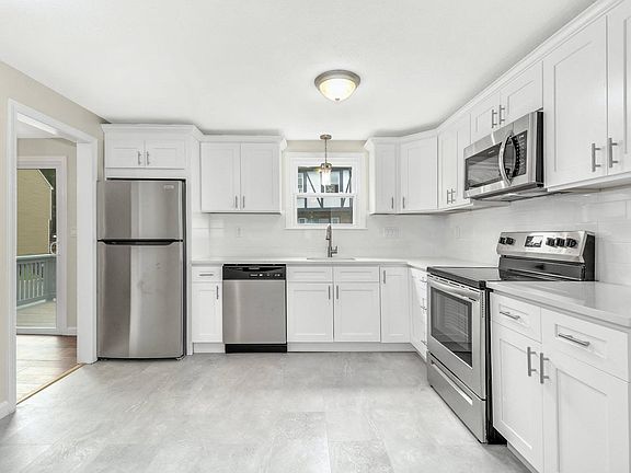 Central airGas heatPrivate back deckWhite shaker kitchen cabinetsQuartz countertopsLarge adjacent dining room