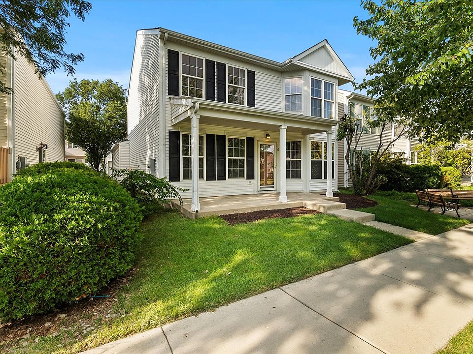 Best and biggest model in the neighborhood with the spacious front porch welcoming you home. Bright 3-bedroom, 2.5 bathroom home overlooking a park-like courtyard and just steps away from Century Park with basketball, baseball fields, playground, pond, and green space! Just under 1700 square feet, this spacious home features an open flow with plenty of spaces from the family room to the dining room and large loft. The eat-in kitchen has an abundance of cabinets and counter space, along with a large breakfast bar with seating. The second floor boasts three large bedrooms and a loft that could very well become your 4th bedroom. Owners' suite with private bath! The private and fenced backyard is ready for your ideas. Close to the Weber Rd corridor with highway access, shopping, and plenty of restaurants!