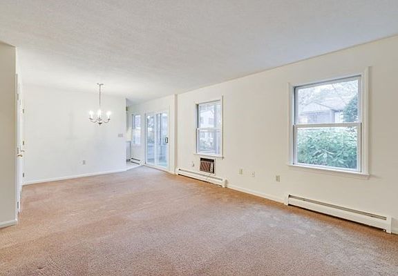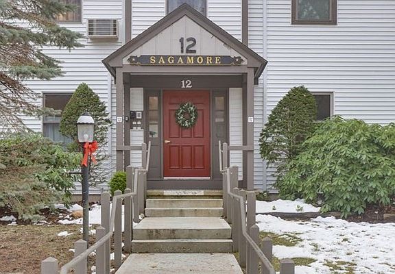 Bright, freshly painted, first floor unit with newer interior windows, newer slider and new screens on screened porch. Open living/dining with nicely applianced kitchen. Two generous size bedrooms with windows overlooking the courtyard. Full bath with access to one bedroom and hallway. Spacious, private basement storage with gas/hot water heating system and washer/dryer. Monthly maintenance fee of $418 includes gas/hot water heat, hot water, water, upgraded cable, exterior insurance, exterior maintenance, rubbish removal, snow plowing and landscaping. Buyer to reimburse Seller for Seller's allocable share of Capital Fund Reserve at closing in the amount of $216. One household pet, 30 lbs. and under, is allowed. Assigned parking plus guest parking. A BRIGHT GEM!