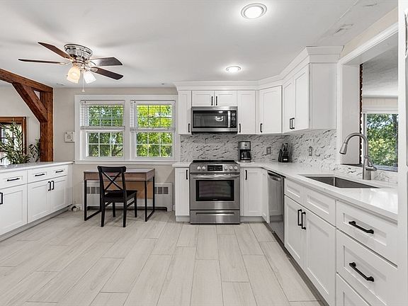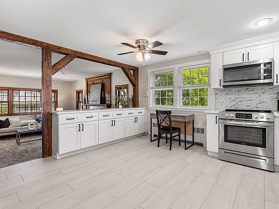 Do not miss this charming spacious ranch tucked away at the end of a quiet dead-end street in Woburn! Step into a sunken living room with hardwood floors, wainscoting & a cozy wood-burning fireplace. The updated eat-in kitchen features quartz countertops, stainless steel appliances & a chic custom backsplash. A sunroom with scenic views opens to the private backyard—your own personal oasis perfect for relaxing or entertaining. The main level also offers 3 generous bedrooms & an elegantly updated bath. The finished lower level provides incredible flexibility with a large family room & bar, 4th bedroom, 2nd full bath, bonus room, laundry/kitchenette & a separate entrance office ideal for working from home or multi generational living! Central Air, updated 200-amp electrical panel, a composite deck and more quality updates throughout. A rare find that blends space, privacy & convenience just minutes to major highways and Woburn Village amenities! OFFER DEADLINE Tuesday 8/26 at 5pm.