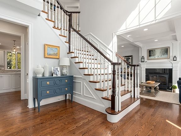This impeccably maintained and beautifully updated residence epitomizes a sensational combination of timeless New England architecture integrating all the modern amenities for today’s lifestyle. Gracious reception foyer with elegant turned staircase opens to a handsome home office and a sun-splashed fireplaced living room and dining room. Formal spaces seamlessly transition into casual areas, offering versatile living options with tall ceilings and amazing natural light throughout. Renovated elegant kitchen, featuring a sleek island and professional appliances, overlooks a spacious fireplaced family room. Sumptuous primary suite with a fireplace, generous walk-in closet and bath. 3 additional bedrooms, office, 2 baths and laundry complete the 2nd floor. Expansive flex space on the sunny 3rd floor with full bath. Lower level features a game room, gym and full bath. Professionally landscaped grounds include a private level fenced rear yard with patio and custom shed. Just move right in!