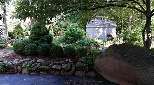 "Welcome Home" This meticulously cared for custom home and professionally landscaped yard is situated in a desirable neighborhood with easy access to 495. Upon arriving you'll find perennial gardens abound, flowering shrubs, mature trees and a tranquil koi pond.The kitchen is a cooks dream with hardwood floors, SS appliances, granite counters, tiled back splash, gas cook top, double ovens with snack bar looking into the dinning room with fireplace and hardwood floors. Off the kitchen is a very large sunny and bright 4 season room with gas stove overlooking the beautiful yard and a large deck with wistria covered pergola . An office with french door enters both the formal living rm and great rm with tray ceiling. Walking distance to playing fields, tennis courts and schools, Finished play room in basement adds more sq ft. Fresh neutral paint, updated bathes, most windows are new, roof 2009,