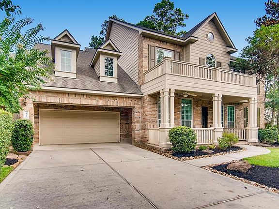 This stunning 6 bedroom home is nestled on a wooded lot on a cul-de-sac in the Beckonvale at Sterling Ridge neighborhood. This spacious home offers elegant living with a formal living room and formal dining room with beautiful millwork. Your private study has sliding French doors and plantation shutters. This home also offers a hard to find second bedroom downstairs with an en suite full bath! Your primary bedroom offers a seating area, views of your private backyard and pool with no back neighbors, and a primary bathroom with dual sinks separate shower and tub, and walk-in closet. Your kitchen features a center island, double ovens, ample cabinet and counter space, and a desk area. Upstairs find 4 additional bedrooms, 2 full bathrooms, a game room, and a Juliet balcony. Outside find a private wooded backyard with covered patio, pool and spa, and beautiful landscaping. More to love about this home are new wood floors, new carpet, new water heater and water softener. Welcome home!
