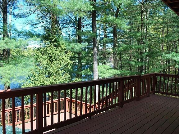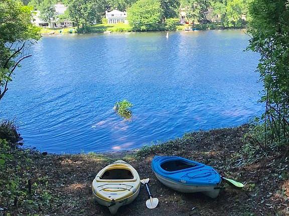 A NEW LIFESTYLE YOU'VE BEEN WAITING FOR! Swimming, boating, fishing, water skiing, kayaking, ice skating right outside your doorstep! RARE OPPORTUNITY with this UNIQUE WATERFRONT custom home on Rock Pond that has a public boat ramp, and with ALMOST 200 FT OF WATER FRONTAGE! Nestled in PRIVACY, on a QUIET DEAD END STREET! Two beautiful decks, a balcony (and your own SHARKLINE swimming pool!) with lots of afternoon sun overlooking the water where boating, water skiing, kayaking, fishing (trout stocked!) and skating offers year round enjoyment. Features open concept living on the main level with cathedral ceilings, lots of windows with views, lovely updated kitchen with new stainless steel appliances; Lower level with sliders to back yard, a great space for a new family room to be completed. Wood stove creates a cozy atmosphere in this lovely 3 bedroom, 2 bath home with wonderful gardens on 1.5 acres, walking distance to town and about 2 miles from I95 for commuters.
