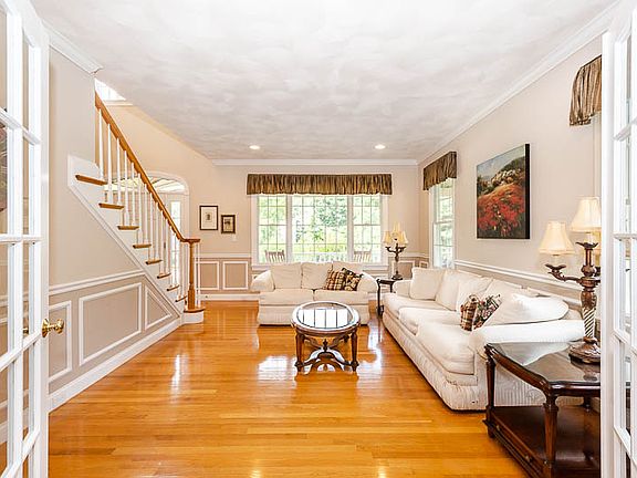 Spectacular 5 bedroom colonial with attached in law or au pair suite beautifully sited on over an acre of land in a desirable Topsfield neighborhood. Soaring 9' ceilings enhance a light, bright and open floor plan. First level boasts hardwood floors, spacious kitchen with granite, ss, center island & dining area opening to a gorgeous fireplaced family room overlooking the beautiful deck and backyard. Mudroom, butlers pantry, and formal dining & living rooms complete the 1st floor. 2nd floor features 3 generous sized bedrooms, full bath, laundry & a master suite fit for a king and queen with sitting area & a walk -in closet that is everyone's dream! Many lower level highlights including large game room, home office, exercise room, sewing room and workshop with storage space. The in-law apartment with balcony has a family room, kitchen, laundry, bath and large bedroom with walk-in. Anderson windows, 3 car garage, newer HW heater, are just some of the hallmarks of this lovely home.
