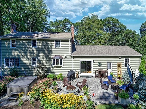 Just move right in! So many incredible updates and improvements have been done so you can simply enjoy your beautiful new home! This stately Colonial with outstanding curb appeal is beautifully set on an acre+ corner lot, adjacent to a cul-de-sac neighborhood. A spectacular new designer kitchen with gas cooking, vented hood & marble counters flows into a cozy fire-placed family room with new Pella sliding doors, bringing you to an expansive new stone patio w/ fire pit & hot tub, ideal for entertaining. 4 sun-filled bedrooms, 2.5 updated baths, central air & hardwood floors throughout, this home offers comfort and style at every turn. Major upgrades include Anderson windows, new walkway, steps, landscaping and privacy trees, new hot water heater (2025), maintenance free siding & new 1st floor laundry room. A spacious lower level allows for future expansion. Prime location near commuter routes and Southborough’s top-rated schools make this turnkey property the definition of easy living.