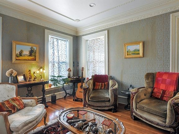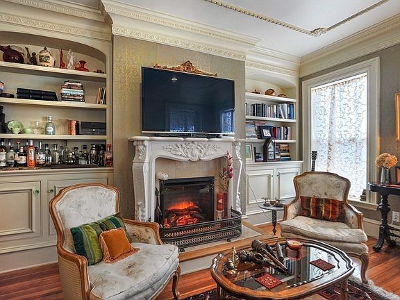 Welcome to this exceptional home in historic Hull Village! Enjoy captivating water views from every room including the expansive covered front porch, perfect for relaxing or entertaining. Every detail speaks to quality and character, blending historic charm with thoughtful updates. Inside, the elegant marble entryway and grand staircase with newel post light and chandelier leads to a living room with French doors, custom moldings, built-in cabinetry, a marble fireplace, and recessed lighting. The kitchen features stainless-steel appliances and a breakfast bar opening seamlessly to the dining room with a hidden pantry. Radiant-heated hardwood floors grace the first and second levels. On the second floor, the spacious primary suite offers a serene retreat with a walk-in closet, alongside another comfortable bedroom. The third floor provides a versatile space -a huge bedroom, office, or media room. All outside of the floodplain, just steps from a private beach and the commuter boat.