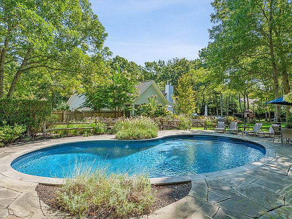 Rental Registration #: RP250514 Beautifully renovated in 2025 by a chic NYC designer, this bright and airy 3-bedroom, 2-bath home offers the perfect Hamptons escape. Set on a private acre abutting a 33-acre preserve in coveted Red Creek Ridge, it blends modern luxury with serene natural surroundings.Flooded with natural light, the open living room boasts cathedral ceilings, wood floors, and a cozy wood-burning fireplace. The stunning chef's kitchen features a quartz island, new stainless-steel appliances, and a sunny dining area overlooking the grounds. The primary suite is a true retreat with a king-sized bed, walk-in closet, and a spa-like bath with double vanity and walk-in shower. Two guest bedroomsone with twins and one with a queenshare a beautifully renovated full bath. A separate family room with pull-out sofa provides the perfect spot for movie nights or working remotely. Step outside to enjoy resort-style living with an expansive deck for lounging and dining, a heated pool, hot tub, and a lush, private backyard. An EV charger in the two-car garage adds modern convenience. Outdoor adventures are minutes awayWest Landing Beach, Squiretown Park hiking trails, and Red Creek Pond for kayaking and paddleboarding. Plus, enjoy easy access to ocean beaches, North Fork wineries, and Hampton Bays' celebrated waterfront dining. Availability: Off-season Oct 2025 - April 2026 and the entire 2026 summer season.