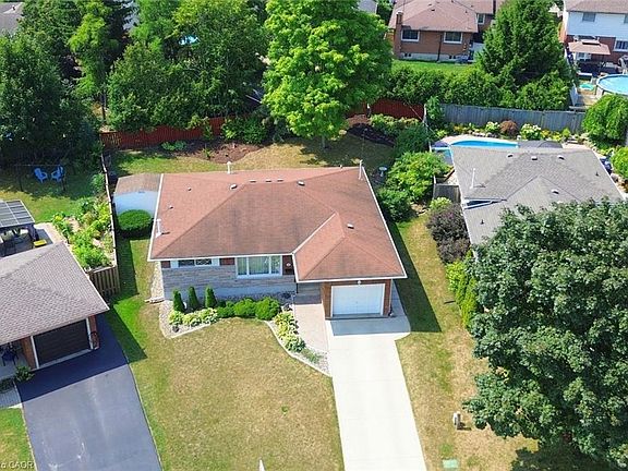 Welcome to this charming 3-bedroom, 1.5-bath bungalow with timeless hardwood floors, tucked away on a quiet court in desirable Dundas. The bright, inviting living room is bathed in natural light from a large picture window, creating a warm, welcoming space to relax or entertain. Adjacent to the dining area, the eat-in kitchen offers a lovely view of the private, leveled, pie-shaped backyard and stone patio - perfect for summer barbeques or quiet evenings outdoors. The finished lower level expands your living space with a generous family room, 2-piece bathroom, separate laundry, utility area, and abundant storage. A convenient back entrance provides excellent potential for an in-law suite or multi-generational living. Additional features include a single-car garage, concrete driveway large enough for 2 cars, fenced yard with mature perennial gardens, and a handy garden shed. Ideally located near parks, schools, and scenic trails, with easy access to downtown Dundas shops and restaurants. Outdoor enthusiasts will love the nearby Bruce Trail and surrounding Conservation Areas-ideal for hiking, biking, and exploring this vibrant nature-filled community.