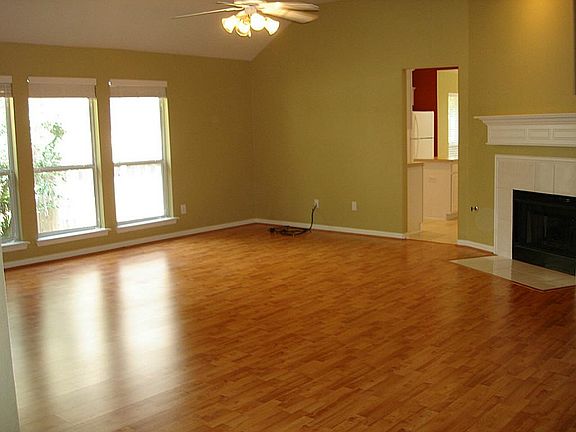 Charming single story 3/2/2 with great curb appeal for lease in Alden Bridge! The split plan features a large family room with laminate flooring and a double sided fireplace that is shared with the formal dining room. There is also an island kitchen open to the sunny breakfast room with bay window. Perfect for your morning coffee. Refrigerator included. Spacious master suite with garden tub. Backyard with deck & sprinkler system.