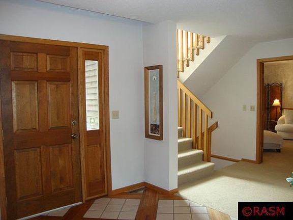 Upper North Mankato, nestled on a wooded cul de sac across from Hoover Elementary. Custom built 2 story. Main floor: spacious entry; open stairs; family room with full wall of built-ins and large closet; formal living room and dining area with vaulted ceiling, fireplace and wet bar. Lovely L-shaped enclosed porch with combination windows, cedar walls, doors to new patio. Remodeled kitchen with new Alder cabinets and granite counter tops, convenient main floor laundry and 1/2 bath. Also main floor master bedroom en suite - bath with 2 granite top vanities, tiled shower and walk-in closet. Upstairs: cute loft area; 2 nice sized bedrooms and full bath. Full basement, concrete block, plumbed for future bath. Nearly 1800 sq. ft. of future living area. Additional features: cedar siding, newer shingles, gutters, furnace and air conditioner.