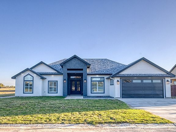 This newly completed custom home in one of Uvalde's most desirable new neighborhoods offers a thoughtful blend of modern design, quality craftsmanship, and everyday comfort. With 4 bedrooms, 3.5 baths, and approximately 2,280 sq. ft. of living space, the layout centers around a highly sought-after open concept that brings the kitchen, dining, and living areas together in one inviting setting. The interior is finished with ceramic tile throughout for a clean, cohesive look and easy maintenance. A 10-foot quartz island anchors the custom kitchen, complemented by custom cabinetry, a beautifully tiled backsplash, and a dedicated dining area plus a breakfast nook. A convenient half bath sits just off the kitchen and also opens to the back patio-an ideal setup for entertaining or future outdoor additions like a pool. Large French doors lead to the covered back porch, creating a great place to unwind in the evenings. The primary suite features a coffered ceiling with white-washed exposed beams, a spacious walk-in closet with built-ins, and a stunning bath complete with dual vanities, a custom tile shower with frameless glass, and a private water closet. Two guest bedrooms include plantation-style shutters, generous walk-in closets with built-in storage, and easy access to a beautifully finished guest bath with quartz counters and a custom walk-in shower. Across the main living area, a second master suite offers flexibility for multigenerational living, extended guests, or a private home office. Additional highlights include custom lighting throughout, decorative eave lighting that gives the home incredible curb appeal at night, a custom steel industrial-style front door with smart keypad entry, and two HVAC units for efficient climate control. The laundry room offers excellent natural light, cabinetry, and a built-in folding table. The fully finished two-car garage includes sheetrock, trim, paint, architectural windows, LED lighting, and an electric opener. Outside, the home features fresh sod, a front sprinkler system, and sits on just over one-third of an acre. The location is hard to beat-just blocks from four major schools and less than five minutes from Uvalde's new hospital. This is a true custom build with finishes and details that set it apart from the typical new-construction home
