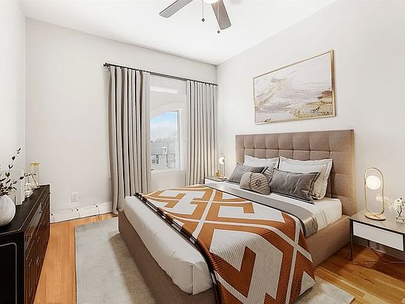 Original architectural detailsIn-unit laundryEat-in kitchenGleaming hardwood floorsSkyline viewsGrand staircaseMassive primary closet