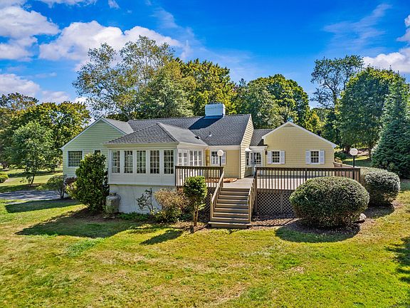 Close to town, on a quiet cul de sac, sits this 2300 sf one floor custom home with an additional 300 sf three season sun room (with propane stove) in a lush, very private setting. This gracious home is situated on over an acre of private mature landscaped grounds, including a tennis court (needs some work), offering privacy while still part of a cul de sac neighborhood. Freshly painted inside and out, with refinished hardwood floors, top of the line newer furnace and recent new roof make this move in ready. Originally four bedrooms, two bedrooms were combined to create a spacious, master suite with a redone master bath, two walk in closets and one cedar closet, two built in chests of drawers and recessed indirect lighting---a true retreat. A total of three bedrooms, all generous sized, (one with a ceiling fan) and two and a half baths. On the lower level there is an oversized two car garage with storage to complete this home. Finally, there are three off-street parking spaces in addition to the two car garage.