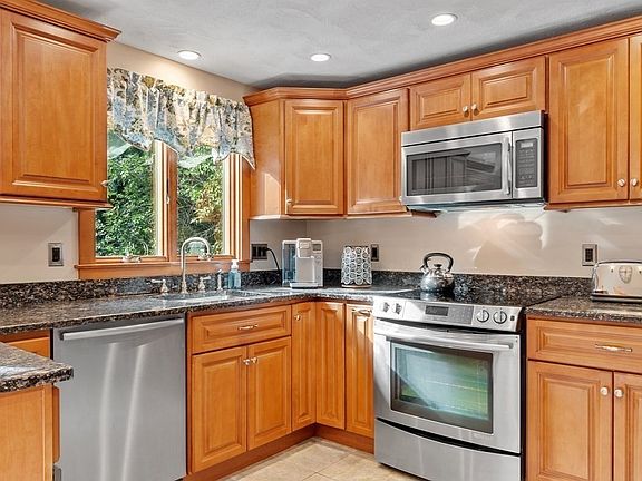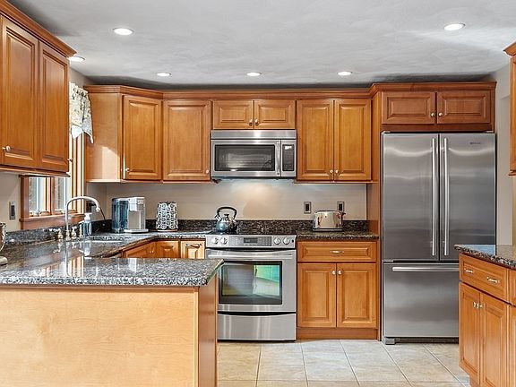 Pristine, move in ready 3 bedroom raised ranch nestled on .65 acres on a private side street. An abundance of sunlight welcomes you into the open concept kitchen, living and dining area. Kitchen offers granite countertops, stainless appliances and recessed lights. The 3 bedrooms and full bath complete the first floor. The spacious family room with wood stove and bar top in the lower level is perfect for entertaining. Wait until you see the remodeled bath with a tiled steam shower. A mud room connects to the 2 car garage as well as access to the backyard. Now let's talk about the spectacular backyard....Step outside from the kitchen onto the expansive deck with attached awnings overlooking your own private retreat offering an inground pool, hot tub, patio area, half bath and outdoor shower. Numerous updates including the lower level bathroom with steam shower, deck, walkway & patio, exterior painting, AC condenser, sprinklers, outdoor bath remodel and more.