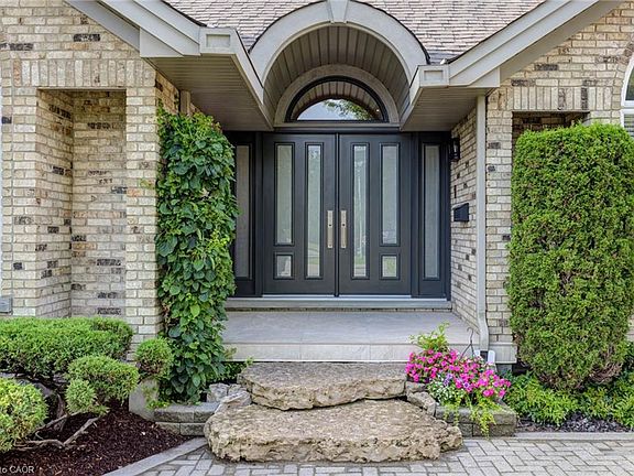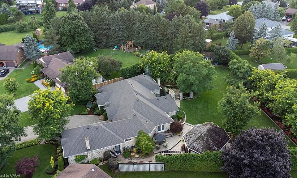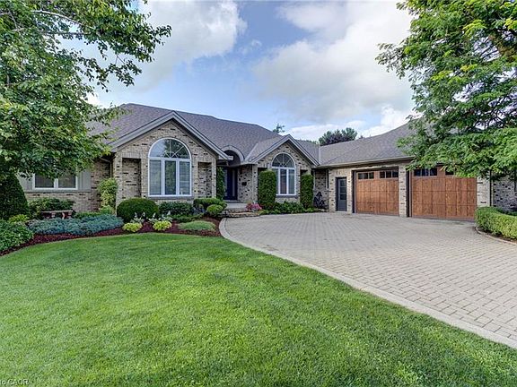 Luxurious Multi-Generational Living in Heidelberg. This custom-built bungalow blends West Coast Boho flair with rustic modern elegance, offering over 6,435 sq. ft. of extraordinary living space. Tucked away on a desirable private street just minutes from St. Jacobs Farmers’ Market and North Waterloo, this expansive home is designed for both lifestyle and comfort. The oversized double-car garage provides direct access to a fully finished in-law suite—ideal for multi-generational living or hosting guests. A grand foyer opens to an airy layout with a formal dining area and a sunken great room featuring vaulted ceilings, custom beams, and a wood-burning fireplace, all overlooking the chef-inspired kitchen with a spacious island. A tucked-away laundry room and powder room add convenience. The main level offers three bedrooms/home office options, including a primary retreat with its own fireplace and a stunning atrium-inspired ensuite filled with natural light. Three full bathrooms complete this floor. The walkout lower level has been newly updated with lighter paint, a wet bar, desk area, and modern finishes, enhancing its potential as a private suite. It includes an additional bedroom, full bathroom, and versatile living space. Outdoors, the beautifully landscaped yard is a true sanctuary with rock gardens, perennials, fire pit, waterfall, gazebo, and hot tub. With three separate patios, a shed with gas hookup, and a yard with pool potential, the possibilities for entertaining and recreation are endless. Gas lines for a BBQ or heater are already in place. A home of unparalleled character and function—this one is a must-see. Book your private showing today!