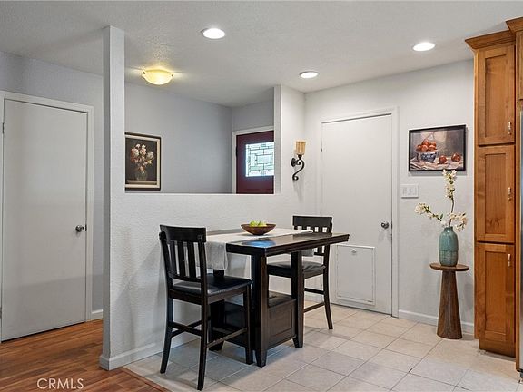 Enter a beautifully updated kitchen featuring custom cabinetry, granite countertops, bar-top seating, newer stainless steel appliances, and recessed dimmer lighting. The open layout flows effortlessly with durable laminate flooring in the main living areas, tile in the kitchen and bathrooms, and dual-pane windows that fill the home with natural light.