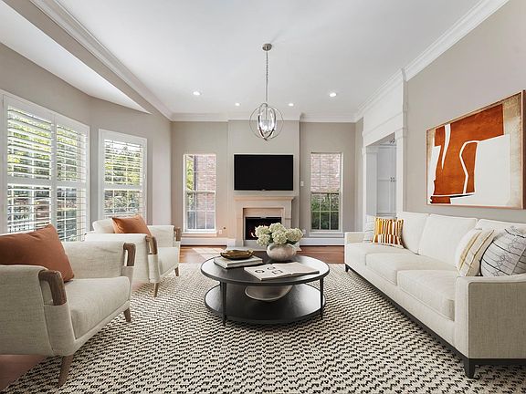 Private interior patioFresh neutral paintRecessed lightingRich wood floorsCozy family roomTons of windowsCorner lot