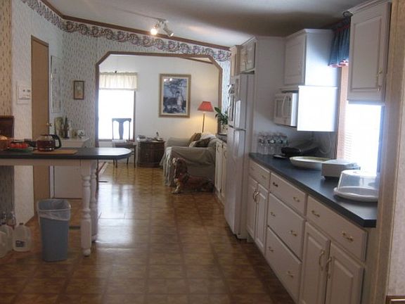 Immaculate Serene Hideaway! Lovely six room double wide home tucked away on a 5+ acre lot. Amenities include a 2 car heated garage with electricity, a wide wrap around deck for fun and enjoyment overlooking a well landscaped yard with flowers and a picket fence. Many other updates include a beautifully maintained interior with a soaking tub for relaxation after a busy day. New railings on stairs and new fence. Foundation recently blocked and leveled. FINANCING AVAILABLE!
