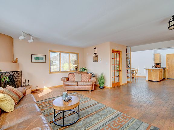 Set on a large private lot, this charming 2-bedroom, 2-bathroom Passive Solar home offers stunning views, an open layout, and abundant natural light. Enter the fully enclosed mudroom & enjoy sweeping views from the living area and a cozy eat-in breakfast nook. The kitchen is light and bright w/high ceilings making it a warm and welcoming space.The primary bedroom is generously sized and includes a walk-in closet. Step outside to a spacious, private backyard featuring 2 outdoor sheds and a traditional horno oven--perfect for entertaining and outdoor cooking. Additional highlights include a newly installed septic system 10/25, water heater fall/2024, passive solar design for energy efficiency, and an oversized 2 car garage with a built-in workbench. Property on shared well.