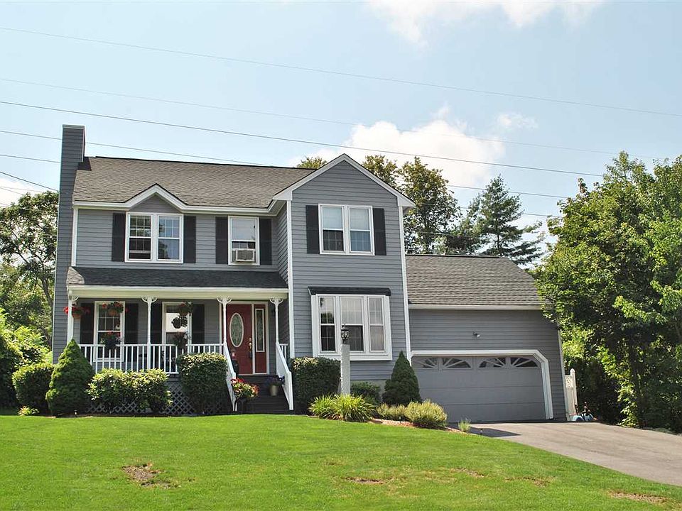 Beautifully Updated and maintained 3 Bedroom Colonial Home on a cul de sac in Commuters' dream location close to Route 3. An adorable Farmers porch at the entrance with lovely new front door. Hardwood flrs in the dining rm, fam rm, and the spacious entryway. Updated eat-in kitchen with breakfast bar, tile floors, SS appliances, pantry closet, and dry-bar area has built in wine rack. Second flr has master suite with walk in closet, and updated ¾ bath. 2 more bedrooms and a full bath also on 2nd flr. Finished lower level offers a spacious recreation or media rm, bonus rm currently used as a fitness area, and a spacious laundry room with storage. Irrigation system in front and back yards, backyard is fully fenced with a good sized deck, new brick path to the side fence entrance, a great private oasis. 2 Car attached garage with direct entry has ample storage space! Roof is less than 5 yrs old! Curb appeal for days! This home is in fabulous move in condition! Seller offering $5k in closing costs toward installation of central A/C and updating 2nd floor carpets.