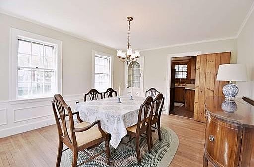 - Din Dscrp: Flooring - Hardwood, Wainscoting, Closet/Cabinets - Custom Built, Crown Molding, Lighting - Pendant
