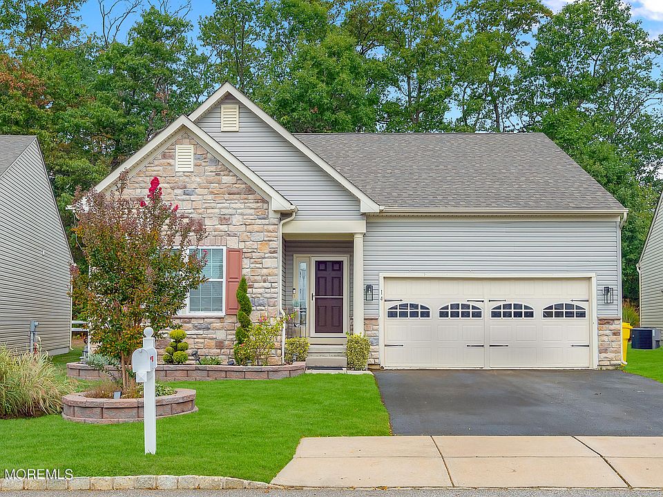Beautiful home on private wooded lot features 3 bedroom 2.5 bath 1 story home with 2 car garage. Open floor plan with eat in kitchen with stainless steel appliances, corian counter tops, 42 inch cabinets, and center island/ breakfast bar that over looks family room and dining area. Spacious master bedroom with walk in closet and master bath. Full finished basement with high ceilings and 1/2 bath thats perfect for entertaining. Short distance to club house that features exercise room, community room, and pool.