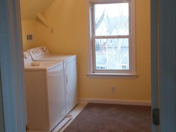 Nice 5 room, 2 bedroom, 1 bath second floor apartment in a two family house with central air conditioning. located within walking of Horn Pond Reservation. No utilities included. No smoking inside. Refrigerator, washer and dryer already in apartment. Two car off street parking. First and security deposit required. No Pets and No Smoking. Water and sewer paid by owner. Trash city pick up.