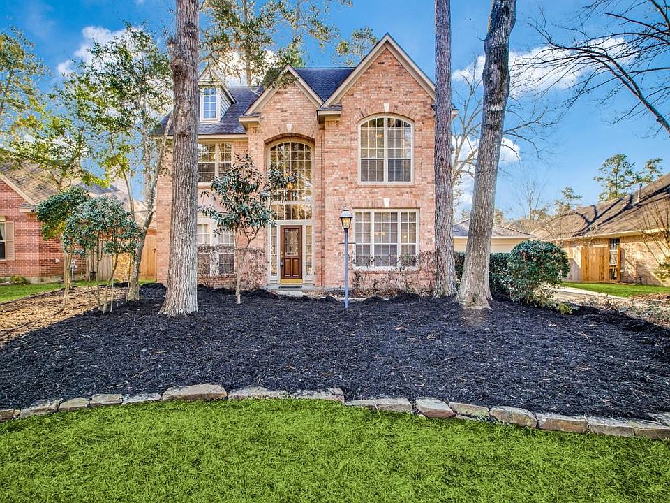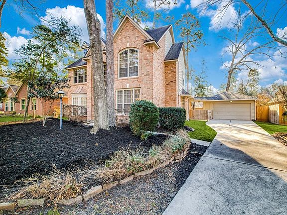 Beautiful 2 story home nestled on peaceful cul-de-sac street in Alden Bridge. Backs onto Greenbelt, offers walking distance to parks, walking trails & easy access in&out of The Woodlands. Never worry about power outages w/ the 22kw whole house Generac generator(2017)&has never flooded.Durable recently installed vinyl plank in 2 story foyer & quiet Study w/French doors & Builtins. Kitchen complete w/tile backsplash,island,builtin desk,& looks onto brkfst &den.1/2 bath located down.Den ft. 2 story ceilings, cozy fp, custom built entertainment system w/large screen tv, expansive windows&ceiling fan. Private primary suite w/ sitting area. Primary bath w/ double sinks, sitting vanity, separate shower & spa, & recently installed tile floors. Carpeted staircase leads to game rm/loft,3 spacious bdrms+ 2 full baths. Outside large peaceful private backyard w/afternoon shade.Leaf Guard Gutters-No more climbing ladders to clean out gutters!10ft extension in garage for additional storage/workspace.