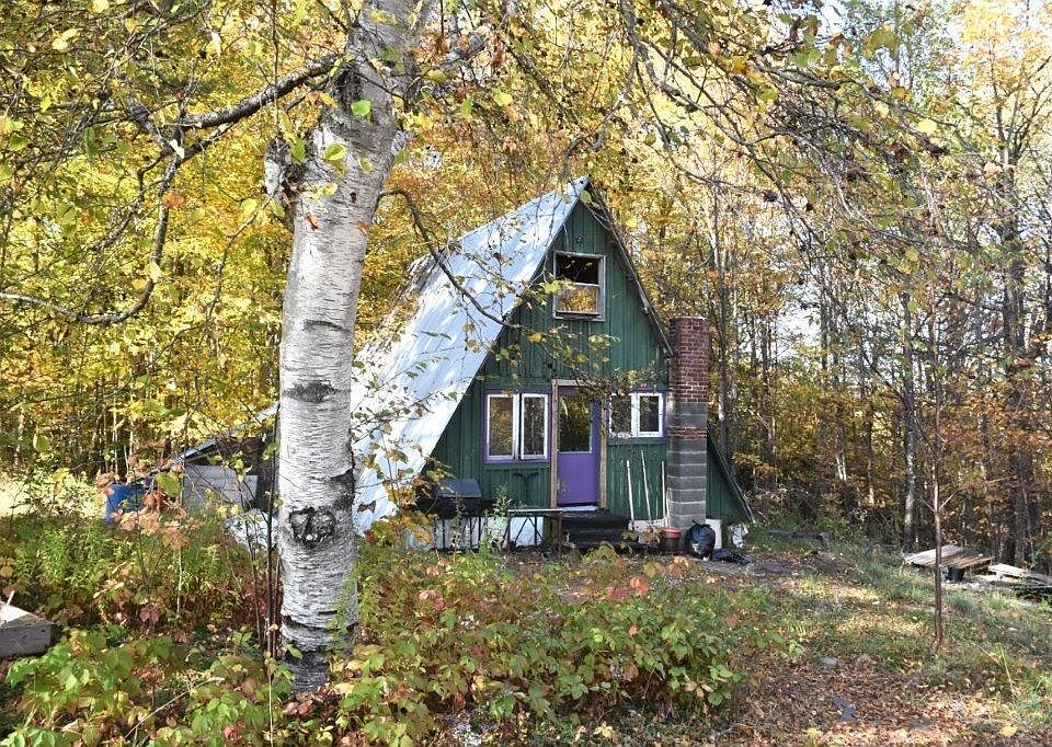 Rustic 20'x30'+/- A-Frame cabin build in 1983, sits on 10.06 surveyed acres, in a pastoral setting of farmlands. Needs work before comfortably habitable. Owner has lived here as a year-round residence until electrical line associated with spring stopped working. Washington Electric Cooperative provides electricity. Land is mostly wooded with mixed forest, ancient maples and birch trees near house site, which is near the height of the land (1800') and slopes towards the NE. Would make a good house site, as there is a sizeable level (by VT standards) area around and behind the existing cabin. Potential for views with clearing. Immediate occupancy at closing! Offered and sold in "as is/where is" condition. Lathrop Road turns into a privately-maintained roadway after the first 0.15+/- miles, just after 12 Lathrop. Users of the private road self-maintain and share costs. Spring is located at the NE tip of parcel. Septic unknown. Power line easement and "any other rights-of-way which might be of record, if any". Right of first refusal has been released.
