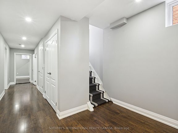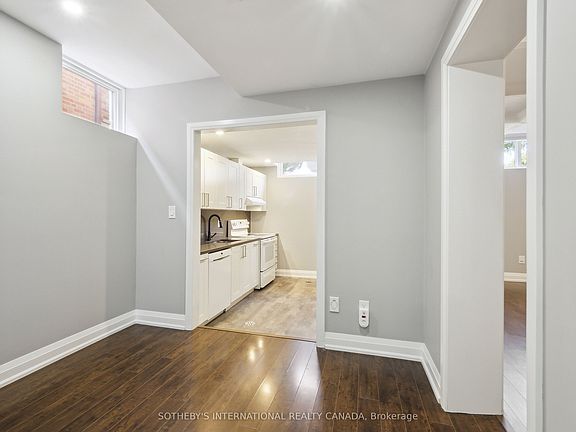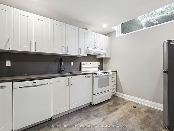 Modern and bright lower-level apartment with a private/separate entrance, high ceiling heights, ensuite laundry and two spacious bedrooms with large closets. Updated eat-in kitchen with granite countertops and a modern bathroom. Approximately 1200 sf of living space. One shared drive parking spot included. Close to public transit, schools and shopping. Easy access to 401/427 highways.