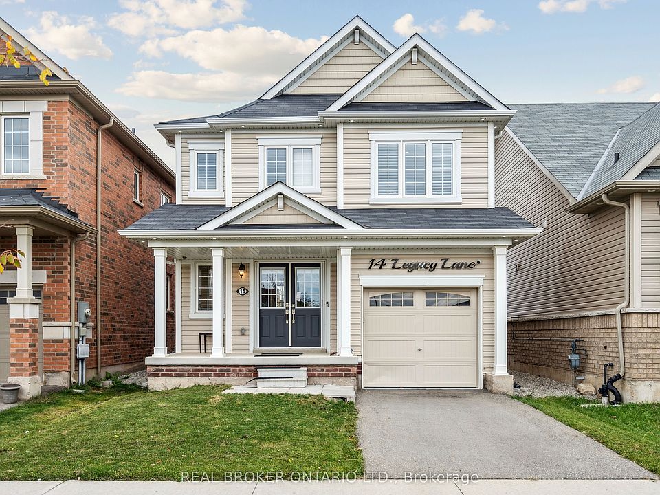Welcome to 14 Legacy Lane, a bright 3-bedroom, 2.5-bathroom home backing directly onto a quiet park for added privacy and a peaceful view. The main floor features a modern open-concept layout with stone countertops in the kitchen and bathrooms, pot lights throughout, and a carpet-free interior that gives the home a clean and elevated feel. Upstairs, you'll find three spacious bedrooms, impressively large bathrooms, and the convenience of second-floor laundry. The primary retreat offers a walk-in closet and ensuite, creating a perfect space to unwind. The unfinished lower level provides plenty of potential for additional living space or storage. Located in a family-friendly neighborhood close to schools, parks, shopping, and commuter routes, this home blends comfort, style, and functionality. Priced to sell fast, it's a fantastic opportunity for first-time buyers, families, or investors.