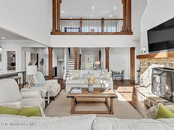 Beautiful Lakefront Home with Unforgettable Views of Lake Martin! Enjoy incredible views from this 5BR (5th BR is Bunk Room), 4.5BA lake home featuring two spacious family rooms, a loft sitting area, and a terrace-level summer kitchen. The main living area showcases a cozy wood-burning fireplace and open design perfect for entertaining. Kitchen offers beautiful quartz countertops and lots of cabinet and oversized island. Outdoor spaces include a flagstone patio and fire pit overlooking the lake. Deep water with a private boathouse and lift makes enjoying lake days effortless. Fully furnished—down to the dishes and bedding—this home is move-in ready! Plenty of storage throughout and designed for comfort, style, and year-round enjoyment. This is your opportunity to own one of the most beautiful views on Lake Martin. Current owners never rented but property could be a STR.