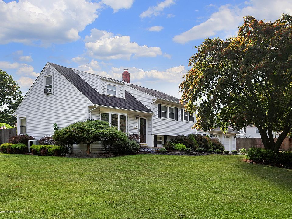 This stylish New Monmouth home looks like it came right out of the pages of a magazine! Oozing with curb appeal, a new paver walkway and professionally landscaped property lead you to this 4 bedroom, 2 full bath split. Updated and bright eat in kitchen with stainless steel appliances, granite countertops, subway tile backsplash and ceramic tile floors. Large 223 sq foot breezeway leads to an oversized 2 car garage with soaring ceilings offers plenty of room for a workshop. Fully fenced in picturesque backyard features an inground pool with a new liner, pavers, firepit area and a deck perfect for entertaining. Solar panels are owned outright and included to complete the package!